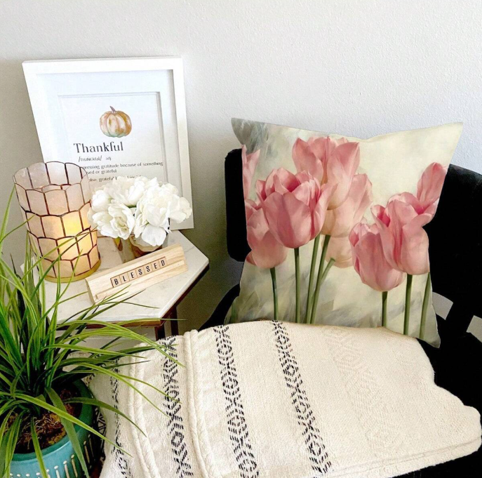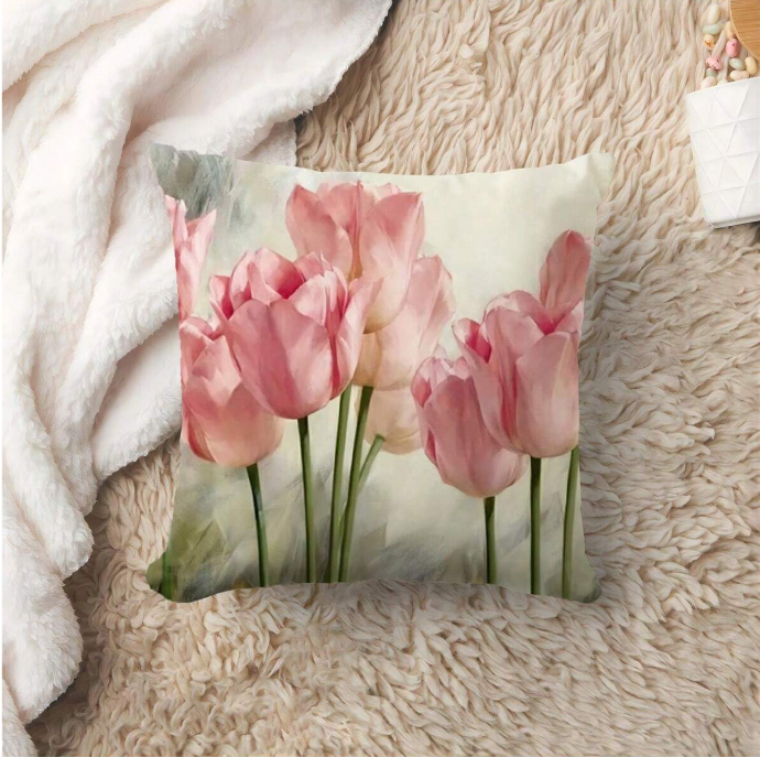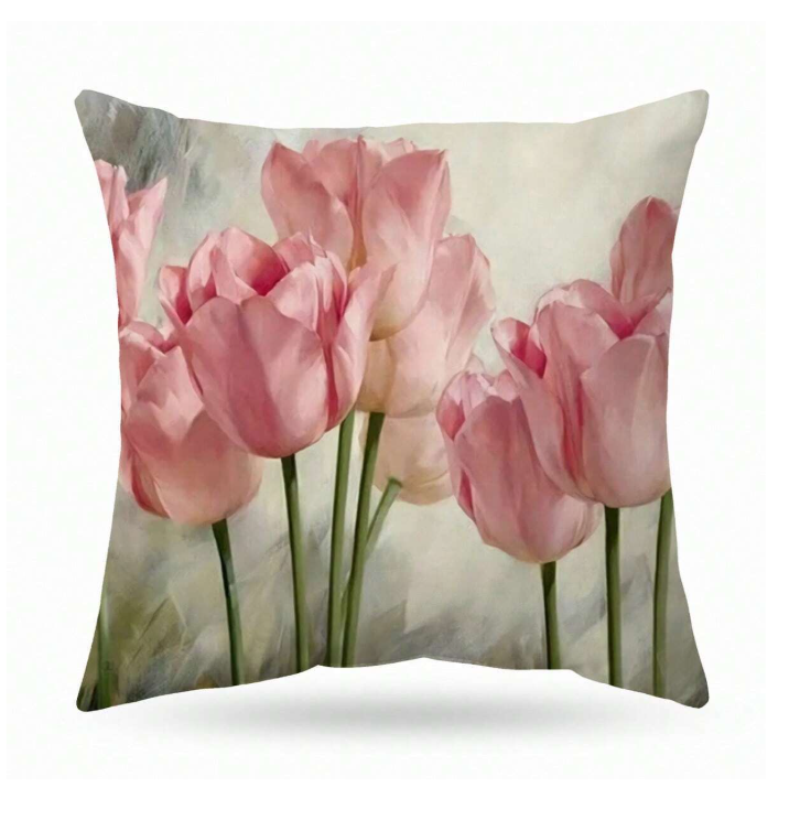 Add a touch of elegance to your home with this beautiful cushion featuring a dreamy tulip design. The soft, pastel tones bring a sense of tranquillity to your space, making it the perfect addition to any room.