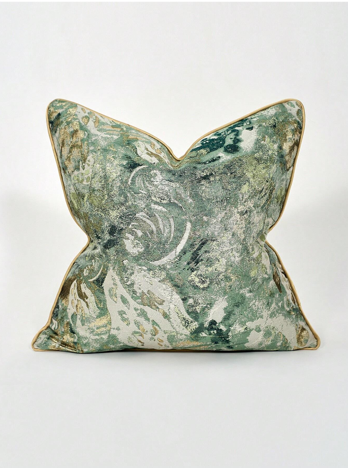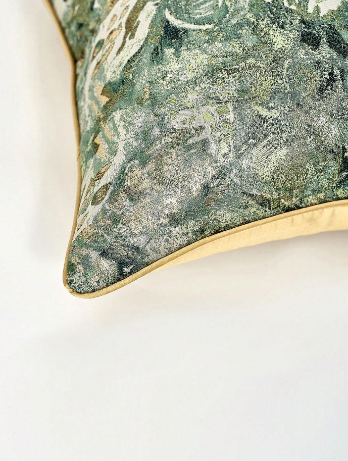 Indulge in luxury and charm with our Golden Celadon. With a shimmery effect from the gold shining through the celadon and forest green, this scatter cushion will add elegance and comfort to any space. Turn your home into a tasteful and exclusive haven with our Golden Celadon.