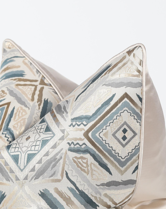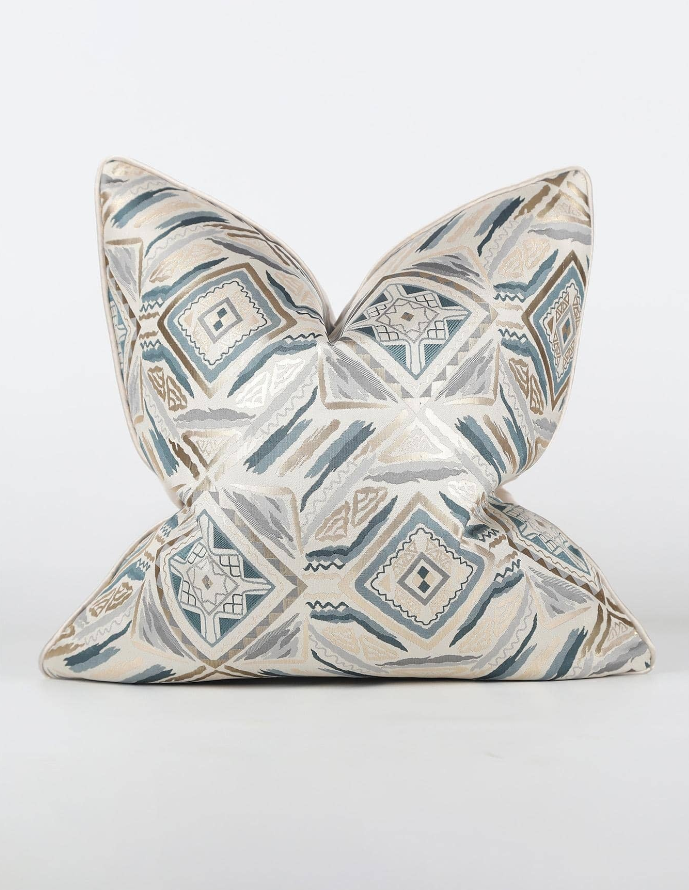 Enhance the elegance of your home with our luxurious Golden Greece scatter cushion cover. Featuring eye-catching geometric patterns inspired by the beauty of Greece, accented with silver, gold, and dusty blue, these covers add a touch of sophistication to any room. Elevate your decor with this exquisite addition.
