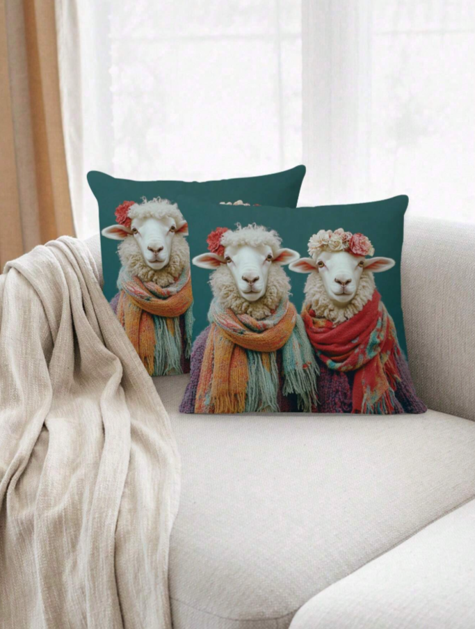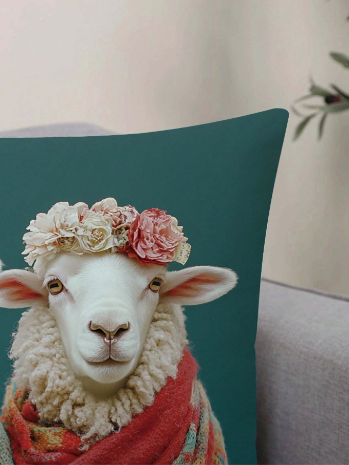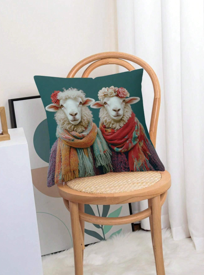 Add a touch of whimsy to your space with the Headband Herd cushion cover. Featuring two adorable sheep adorned with floral headbands, this playful design brings charm and cheer to any room. The deep green background complements the vibrant floral accents, making it the perfect piece for animal lovers with a love for nature’s beauty.